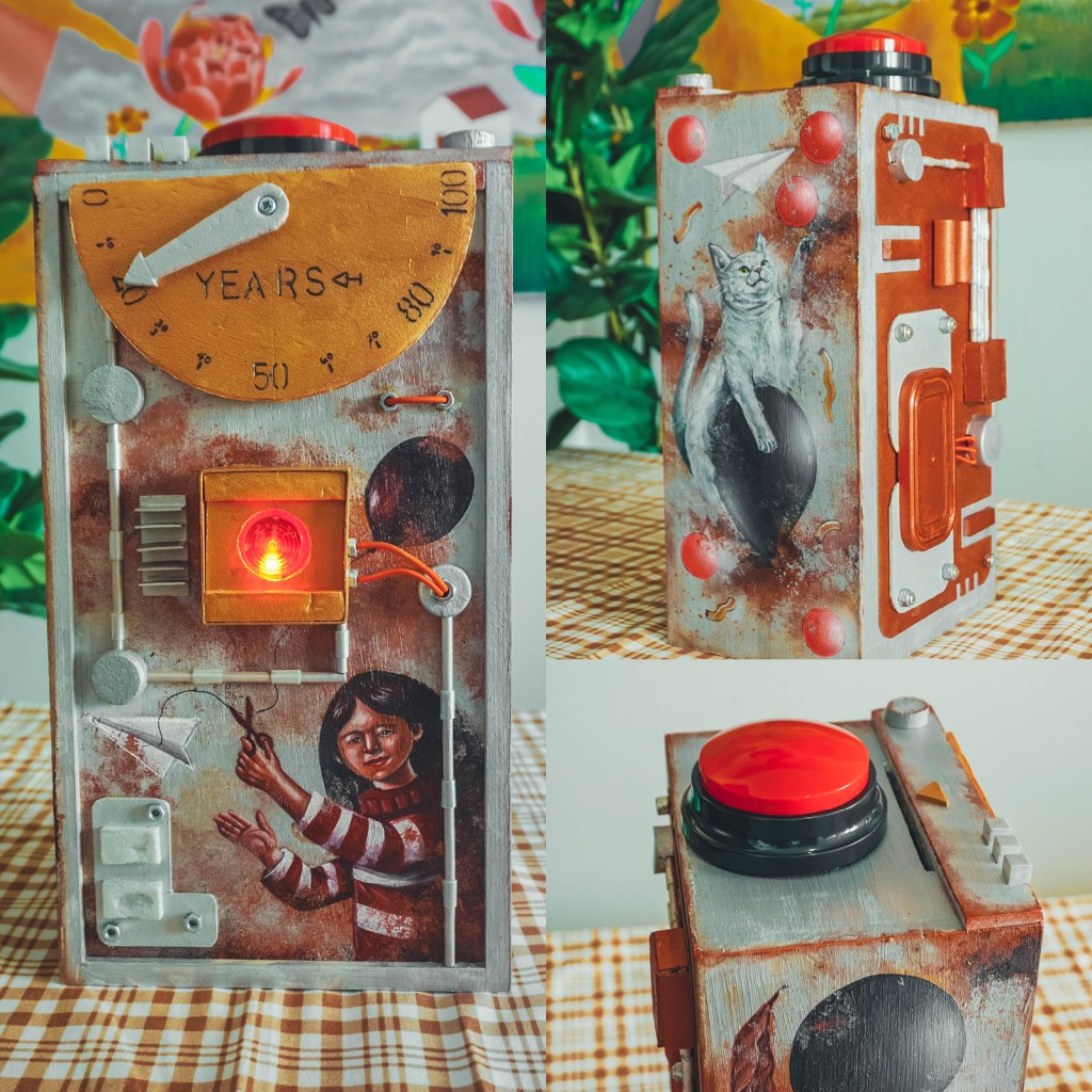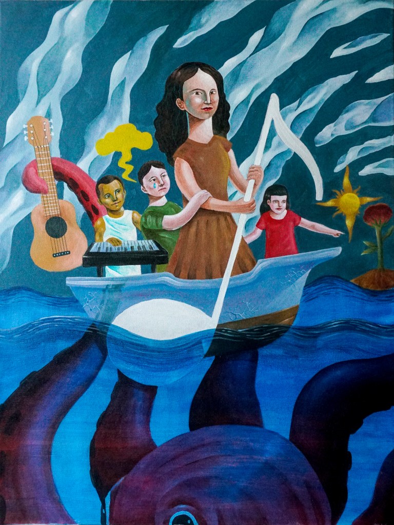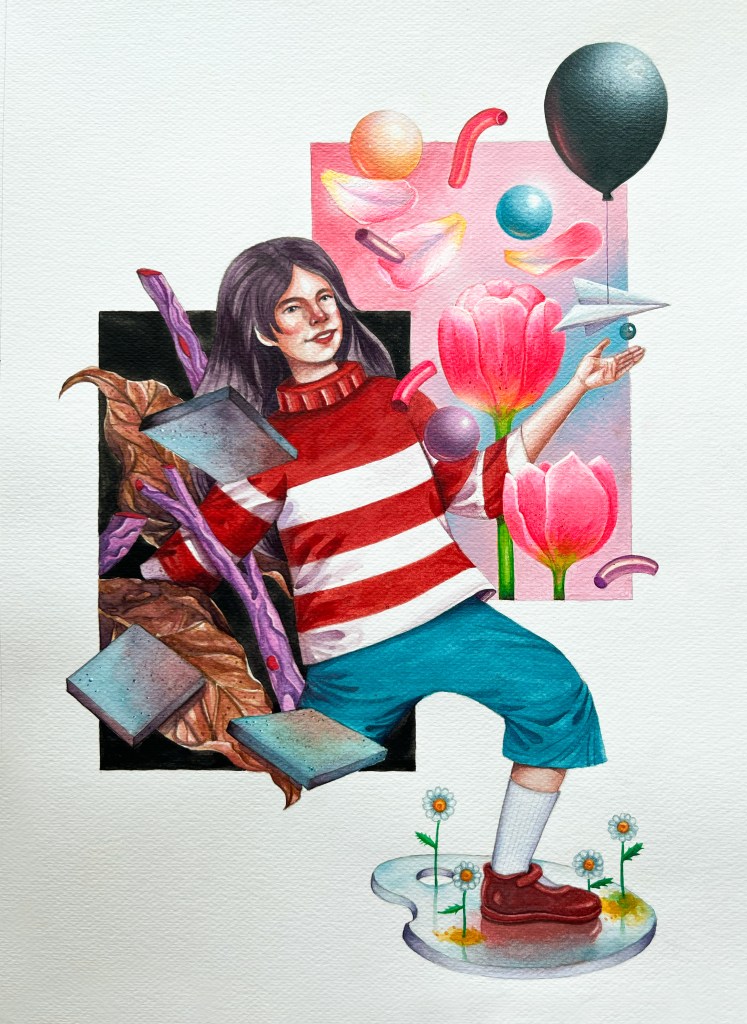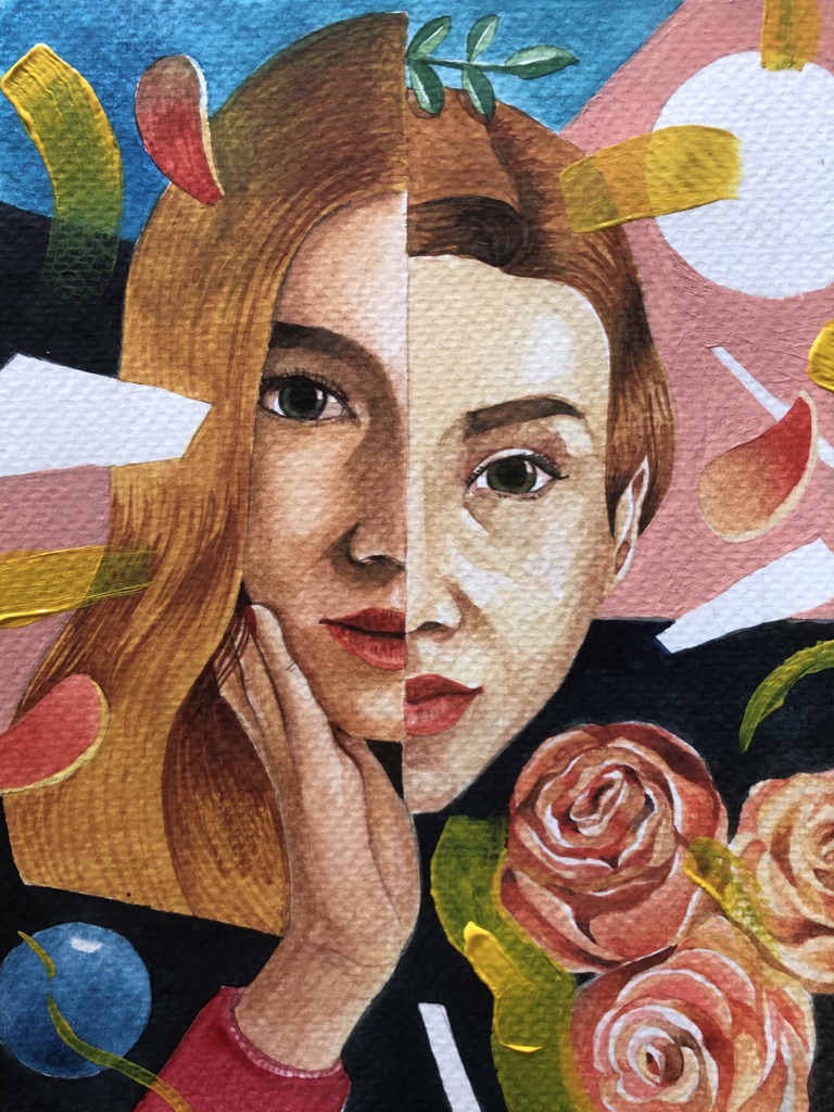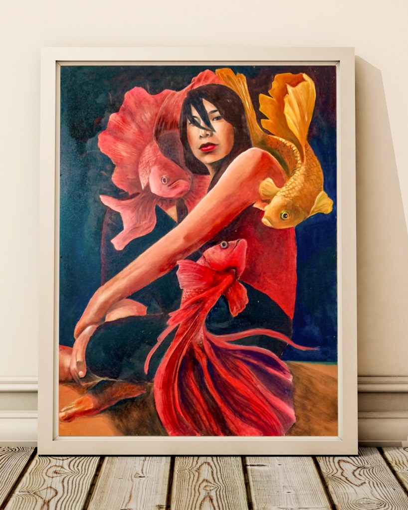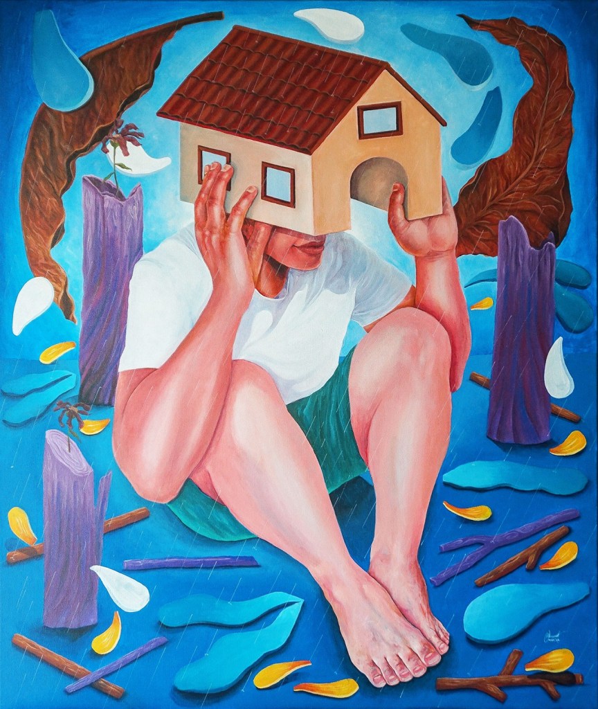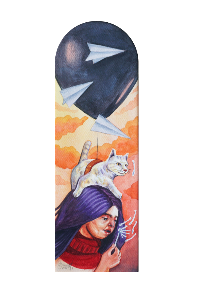 “A Letter To My Younger Self” / 13cm x 18cm x 36cm / Acrylic on Wooden Box And Recycled Materials (SOLD)“7 Homes” / 40cm x 50cm / Acrylic on canvas(SOLD)“Essays” / 23.6″ x 31.5″ / Acrylic on canvas (SOLD)“When Art Whispered It’s Fine” / Acrylic on Canvas 100cm x 120cm“Fe & Marcelo” / 60cm x 80cm / Acrylic on canvas“Defiance” / 35.5″ x 27.5″ / Oil on Canvas (SOLD)“Fallacy” / 26.5″ x 34.5″ / Oil on Wood Panel (SOLD)“Betta” / 25.5″ x 33.5″ / Oil on Wood Panel (SOLD)Untitled 2 / Watercolor on paperUntitled 1 / Watercolor on paper“Elusive” / Digital painting
