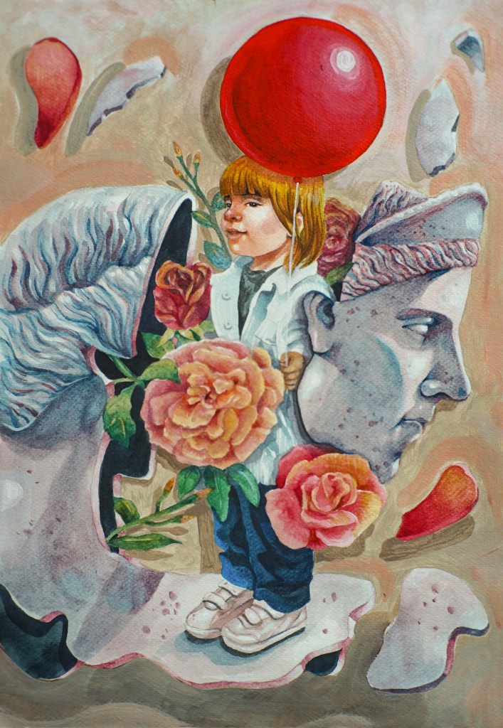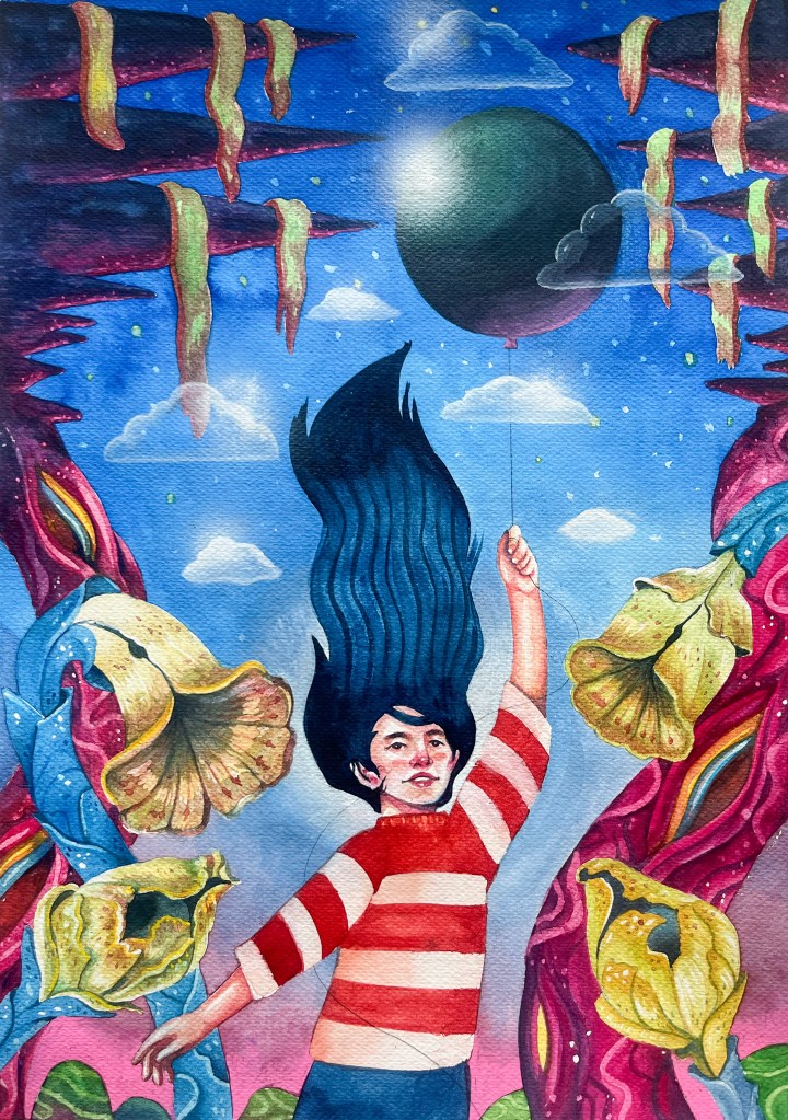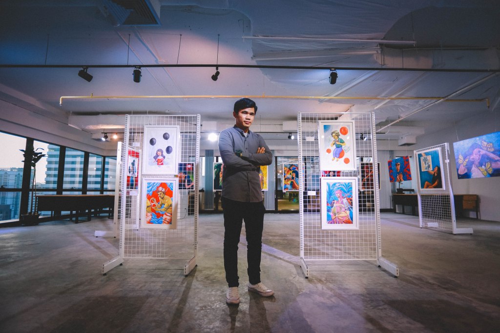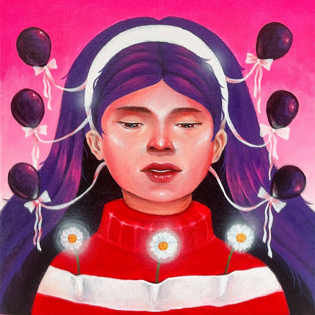 “Take Off” / 14.5″ x 22″ / Watercolor (SOLD)Fragments / Watercolor on paper(SOLD)“Too Much to Think, Too Little to Say” / 14.5″ x 22″ / Watercolor on paper (SOLD)“Gigi” / 23.6″ x 31.5″ / Acrylic on canvas (SOLD)“Hands of Time” / 14.5″ x 22″ / Watercolor (SOLD)“Diversion” / 40cm x 50cm / Acrylic on canvas “Wala’y Bagyong Tinuod” (No Storm is Real) / Acrylic on canvas 100cm x 120cm“In Reverie” / Acrylic on canvas / 30cm x 30cm“Safeguard” / Acrylic on canvas / 30cm x 30cm“Perfection Paralysis” / 50cm x 70cm / Acrylic on canvas“Wilting Cloak” / 36″ x 24″ / Oil on Canvas (SOLD)“Collector of Things: The Good, The Bad, And The Ordinary” / Acrylic on Canvas 100cm x 120cm