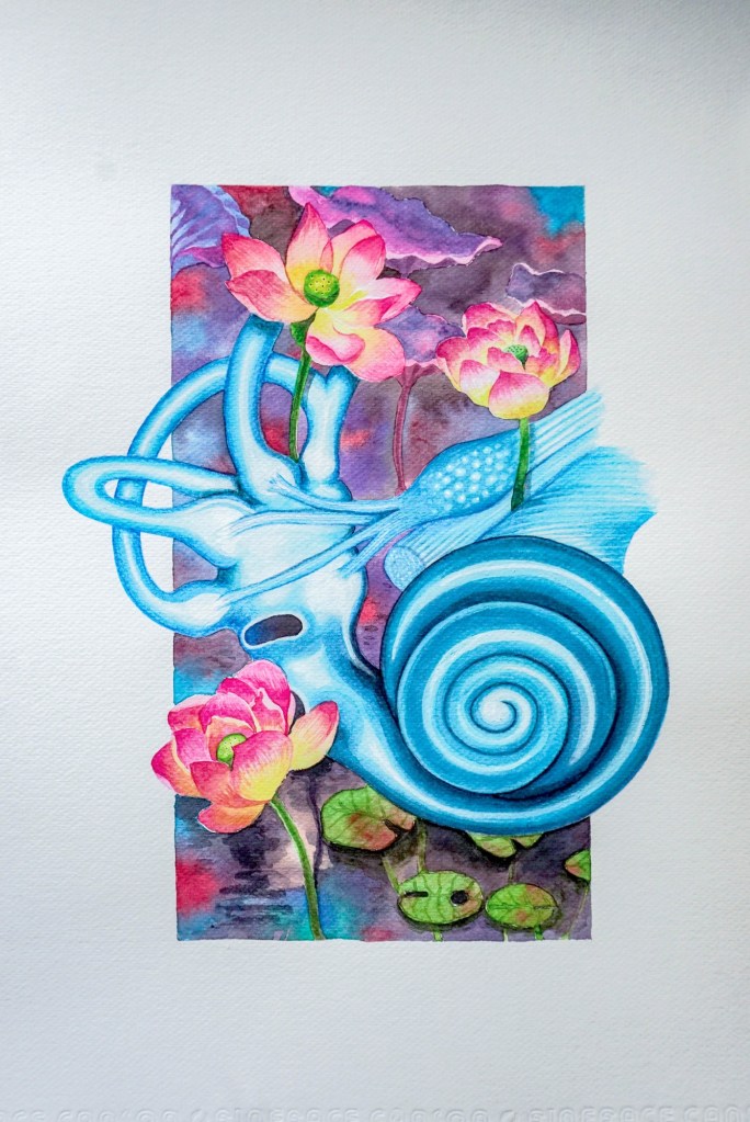 “A Ripple of Hope” / Watercolor on paper(Commissioned art)“Dandelions” / 21cm x 29.7cm / Watercolor on paper(SOLD)“Light Within” / 21cm x 29.7cm / Watercolor on paper(SOLD)“Stardust” / Watercolor on paper(SOLD)“Past, Present, Future” / 14.5″ x 22″ / Watercolor on paper (SOLD)“Spiritus et Vox” (breath & voice) / Watercolor on paper A3 (commissioned art)“Auditus et Statera” (hearing & balance) / watercolor on paper A3 (commissioned art) “The Inner Child” / 29cm x 41.5cm / Acrylic & Watercolor on paper(SOLD)“Soar” / 29.7cm x 42cm / Watercolor and Acrylic on 320gsm Paper “Yellow Brick Road” / 29.7cm x 42cm / Watercolor and Acrylic on 320gsm Paper “Transition” / 29.7cm x 42cm / Watercolor and Acrylic on 320gsm Paper